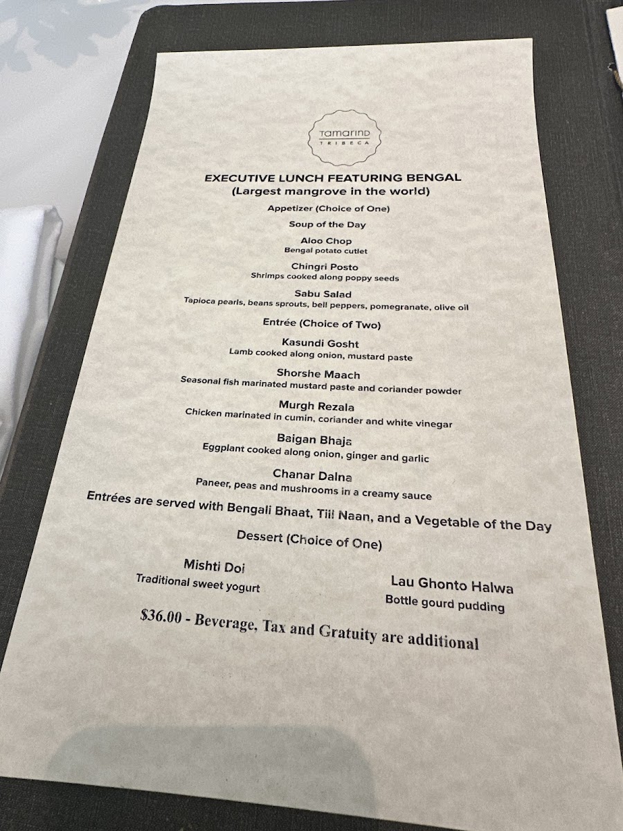 Tamarind Tribeca Menu