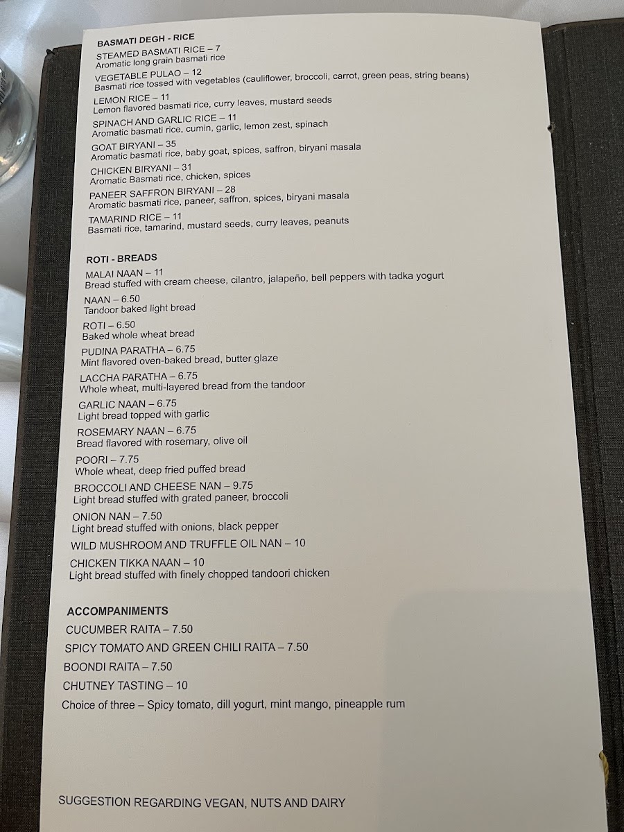 Guests can enjoy a range of dishes that balance familiar spices with contemporary presentation. Starters like the Hara Bhara Kabab or Vegetable Samosa make for satisfying bites to share, while standout entrées such as the Lobster Masala or Malai Halibut provide a more indulgent centerpiece. For a touch of richness, the Wild Mushroom and Truffle Oil Nan complements many choices, adding earthy depth to the meal.